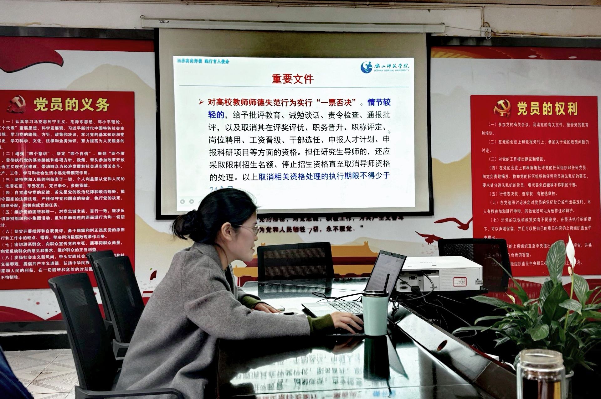 会议第三阶段,材化公司党委副书记、纪委书记胡涛开展师德师风专题教育。她领学了《习近平总书记关于师德的重要论述》,结合《高等学校教师职业道德规范》等师德师风建设重要文件,围绕违反《新时代高校教师职业行为十项准则》的相关典型案例,强调教师职业道德规范、教师言行规范要求。并传达了学校就业工作会精神,并对近期员工就业、考研、2025年老员工创新大赛和员工安全等工作进行了部署。