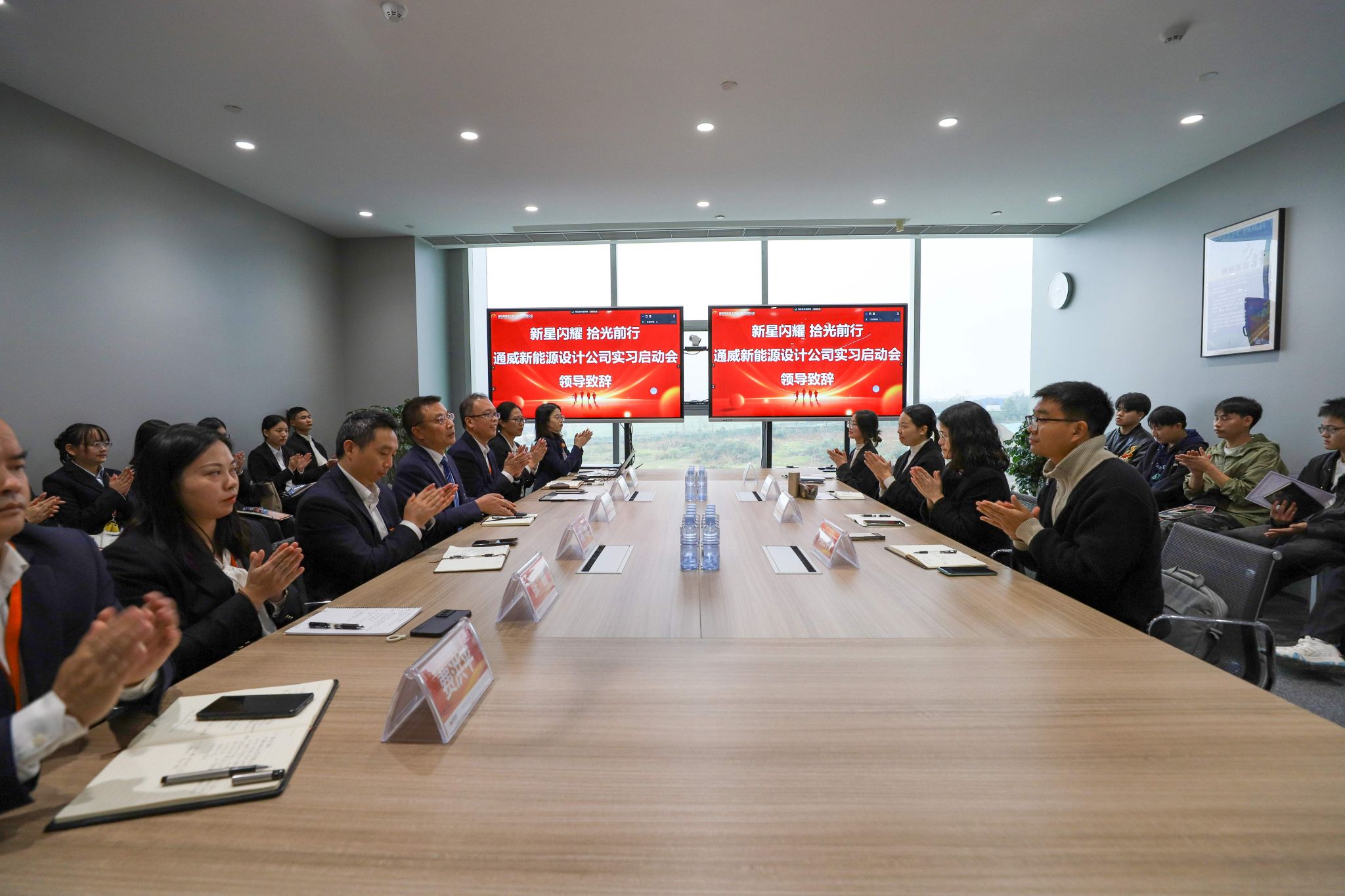 本网讯(文/闫胜利 图/通威公司 )11月11日,公司党委副书记胡涛、副经理陈茂霞和辅导员闫胜利带队,将来自材化学院、经济管理学院和电子信息与人工智能学院的首批17名员工护送至通威新能源有限公司(以下简称“通威公司”)开展实习实践。此次实习得到了通威公司的高度重视,公司总经理邓卫平、总经理助理陈君、通威新能源工程设计四川有限公司常务副总经理高广海等领导出席了实习启动会。