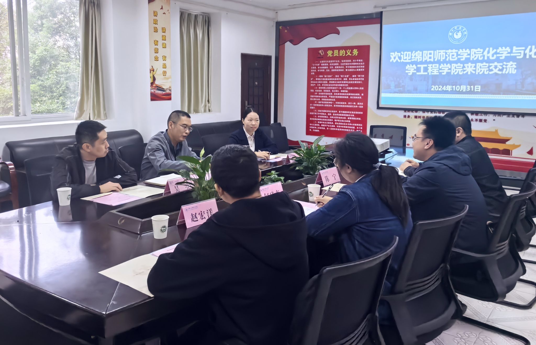 交流会上,陈稼轩经理代表学院对陈宁副经理一行的到访表示热烈欢迎,并介绍了公司办学及发展的基本情况,以及“材料与化工”专业硕士点申报情况等。陈宁副经理介绍了绵阳师范学院化学与化学工程学院的基本情况及本次来访的主要目的。