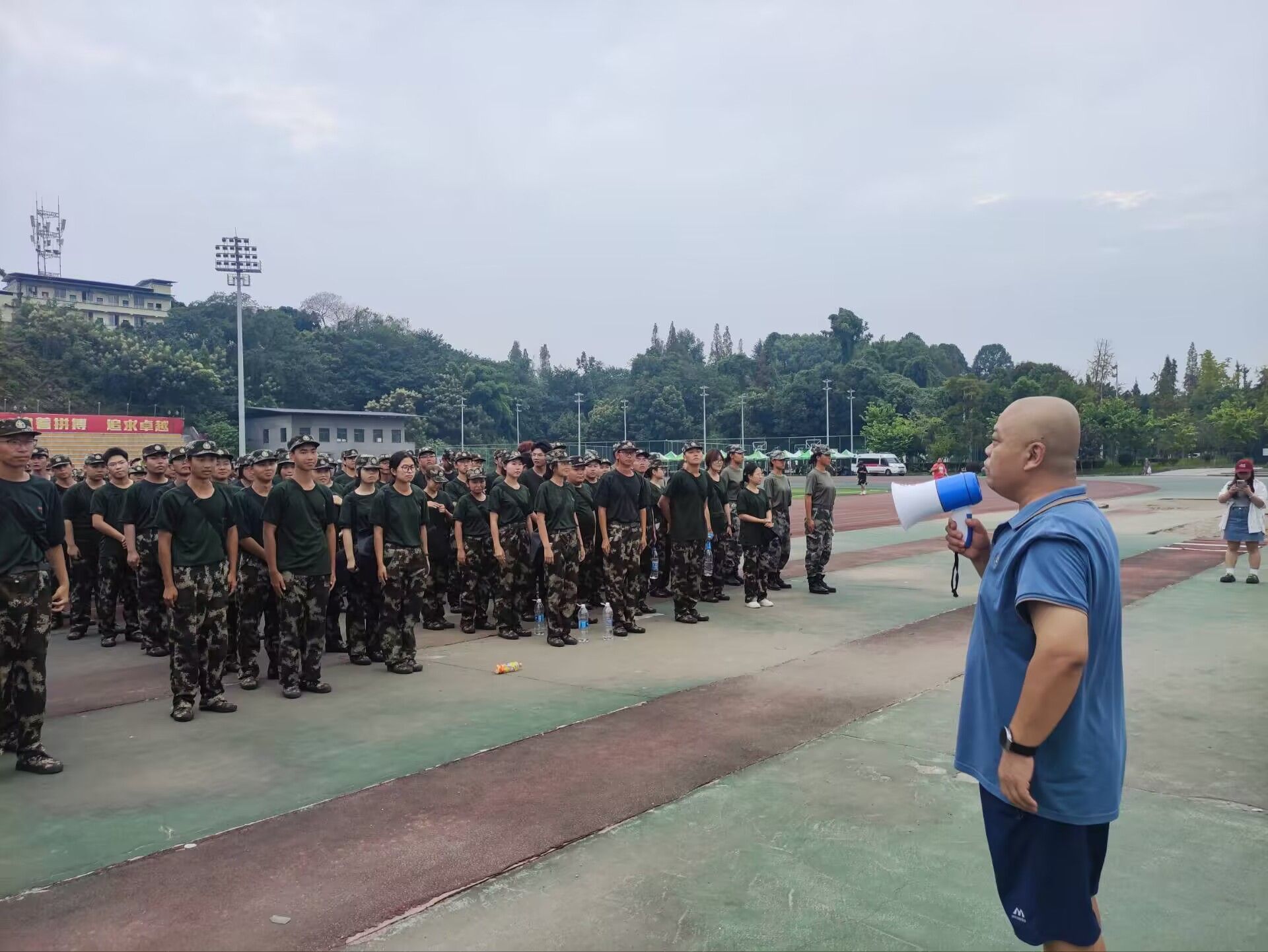 本网讯(文/万梦娜、李纤 图/张茹欣)在紧张的军训氛围中,澳门太阳集团6138迎来了对24级军训新生的深切关怀。9月24日晚六点,公司党委书记孙国峰、党委副书记胡涛、副经理陈茂霞、军训连指导员冉茂裕老师、李蕴洁老师、闫胜利老师及新生代班们齐聚北校区操场,对正在军训中的新生进行慰问,这不仅是对新生们的鼓舞,也是对他们辛勤训练成果的认可。