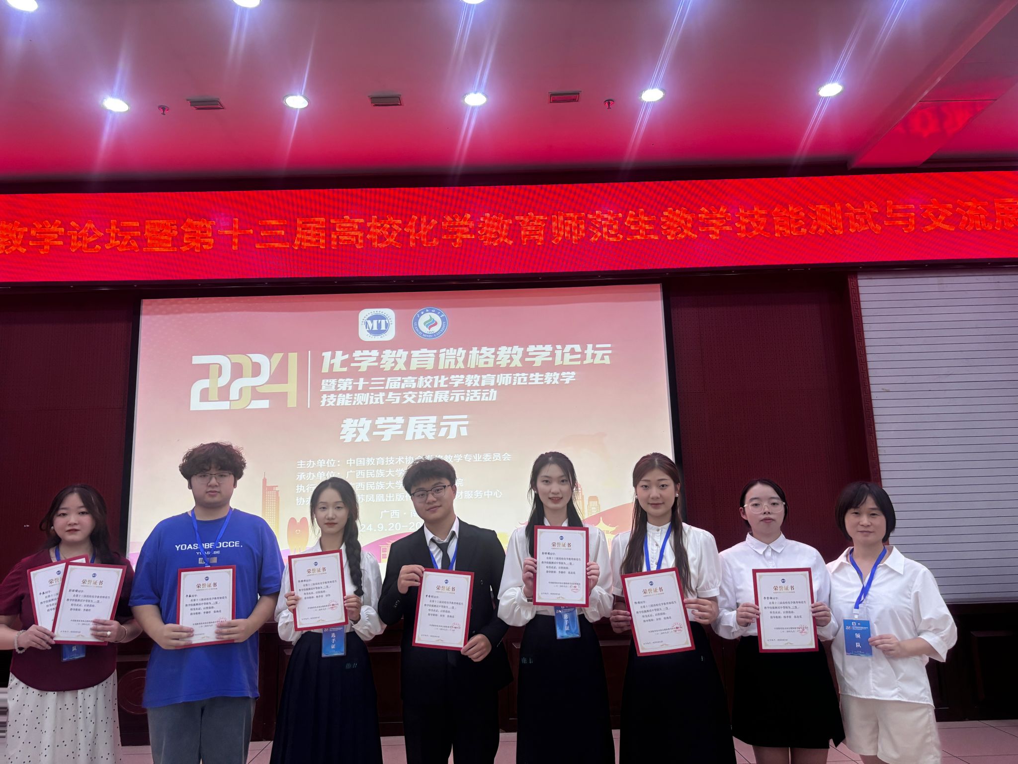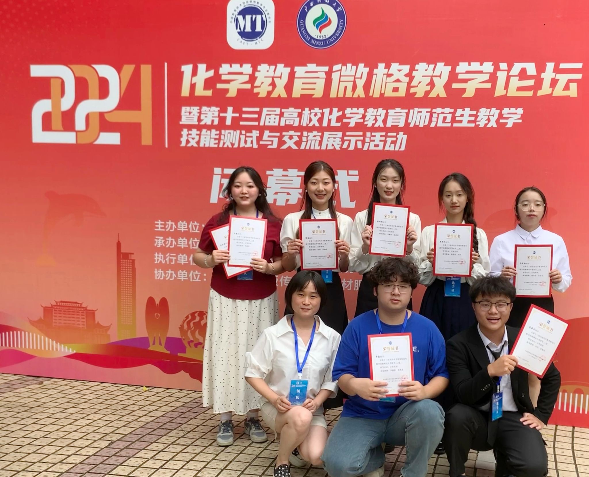 本次竞赛取得的成绩离不开指导教师队伍的潜心育人精神,充分展现了师生的团队协作能力,是材化学院持续开展师范生教学改革和全面推进“三全育人”的重要成果。今后,学院将继续加强师范生教学能力的培养,为新课程改革背景下的化学教育事业添砖加瓦。