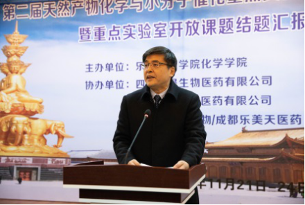 本网讯(文、图/陈稼轩)由澳门太阳集团6138主办, “天然产物化学与小分子催化”四川省高校重点实验室承办的“第二届天然产物化学与小分子催化重点实验室学术研讨会”于2019年11月22日至24日在澳门太阳集团6138成功召开。来自中国科学院、清华大学、复旦大学、四川大学、上海大学、苏州大学、聊城大学、中国人民解放军空军军医大学、江苏师范大学、成都大学、西南交通大学、西南科技大学、四川轻化工大学、绵阳师范院等单位的62余名专家学者、研究生代表及公司师员工参加了研讨会。大会共接收论文摘要46篇,墙报24篇。会议设置了1个主会场、1个分会场,共组织了26场报告。