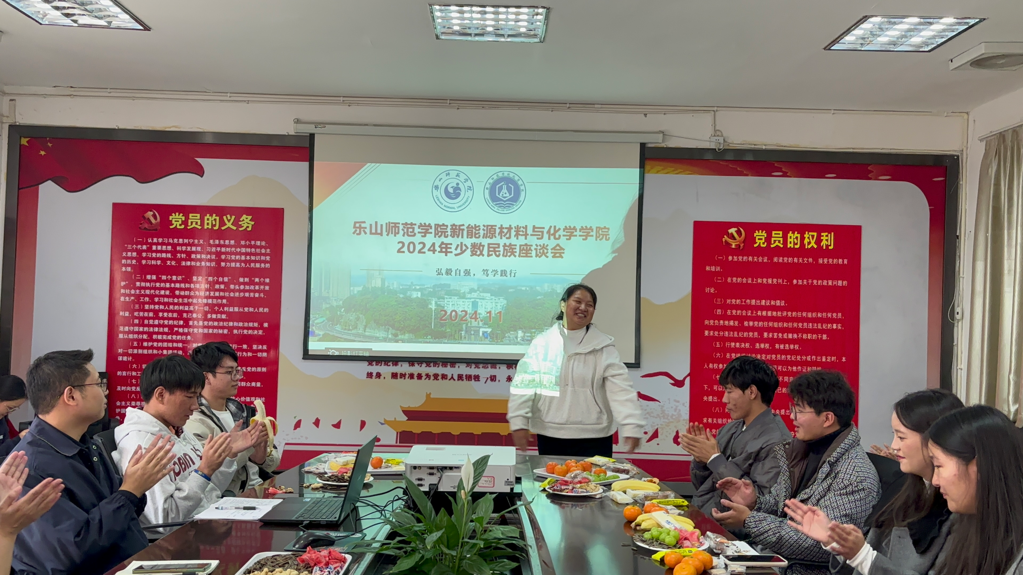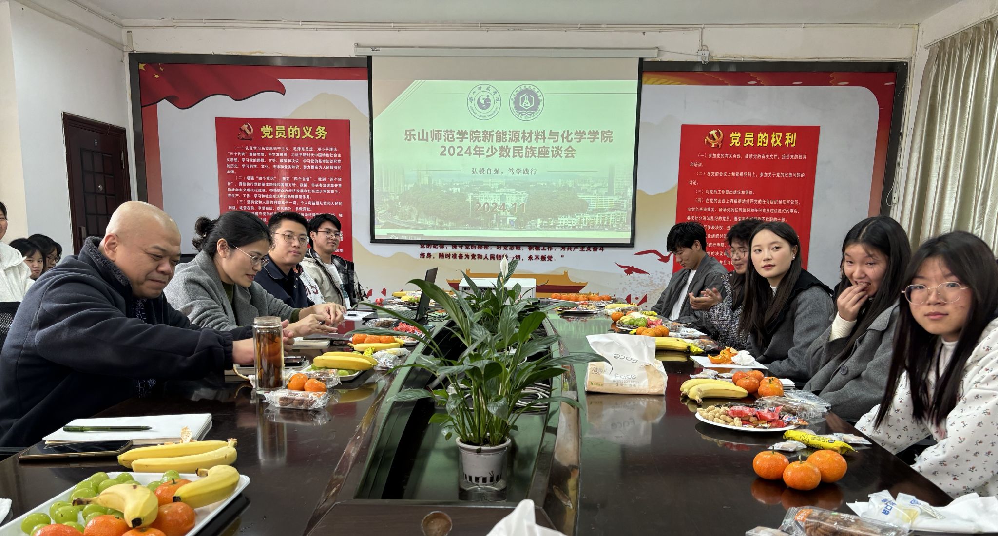 本网讯(文、图/冉茂裕、孙铭霞)为深入学习贯彻习近平总书记关于加强和改进民族工作的重要思想,进一步提升铸牢中华民族共同体意识教育质量和水平。11月22日,澳门太阳集团6138在会议室隆重召开“情聚材化,民族欢谈”2024年秋季学期少数民族员工座谈会。公司党委书记孙国峰、党委副书记胡涛、学院全体辅导员及学院全体少数民族员工参会,会议由胡涛主持。