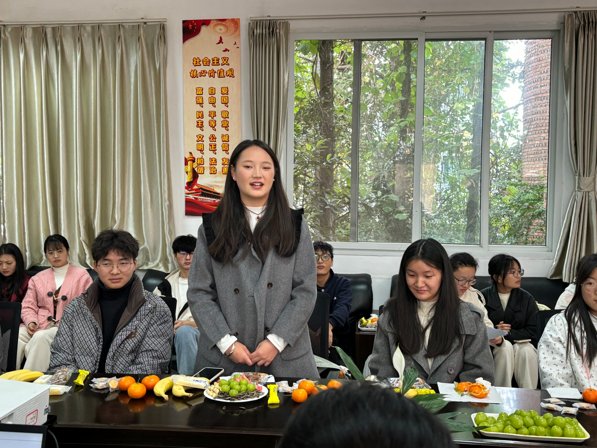 少数民族同学们纷纷表示,他们衷心感谢学院对他们的悉心关怀与坚定支持,将以更加饱满的热情投入到学业与生活中,为实现个人价值和学院发展贡献力量。彝族同学莫色阿支领着大家齐声合唱《敬酒歌》,用歌声传递彝族新年祝福,现场氛围温馨而热烈。最后,学院还为同学们准备了慰问品,座谈会在轻松愉快氛围下中结束。
