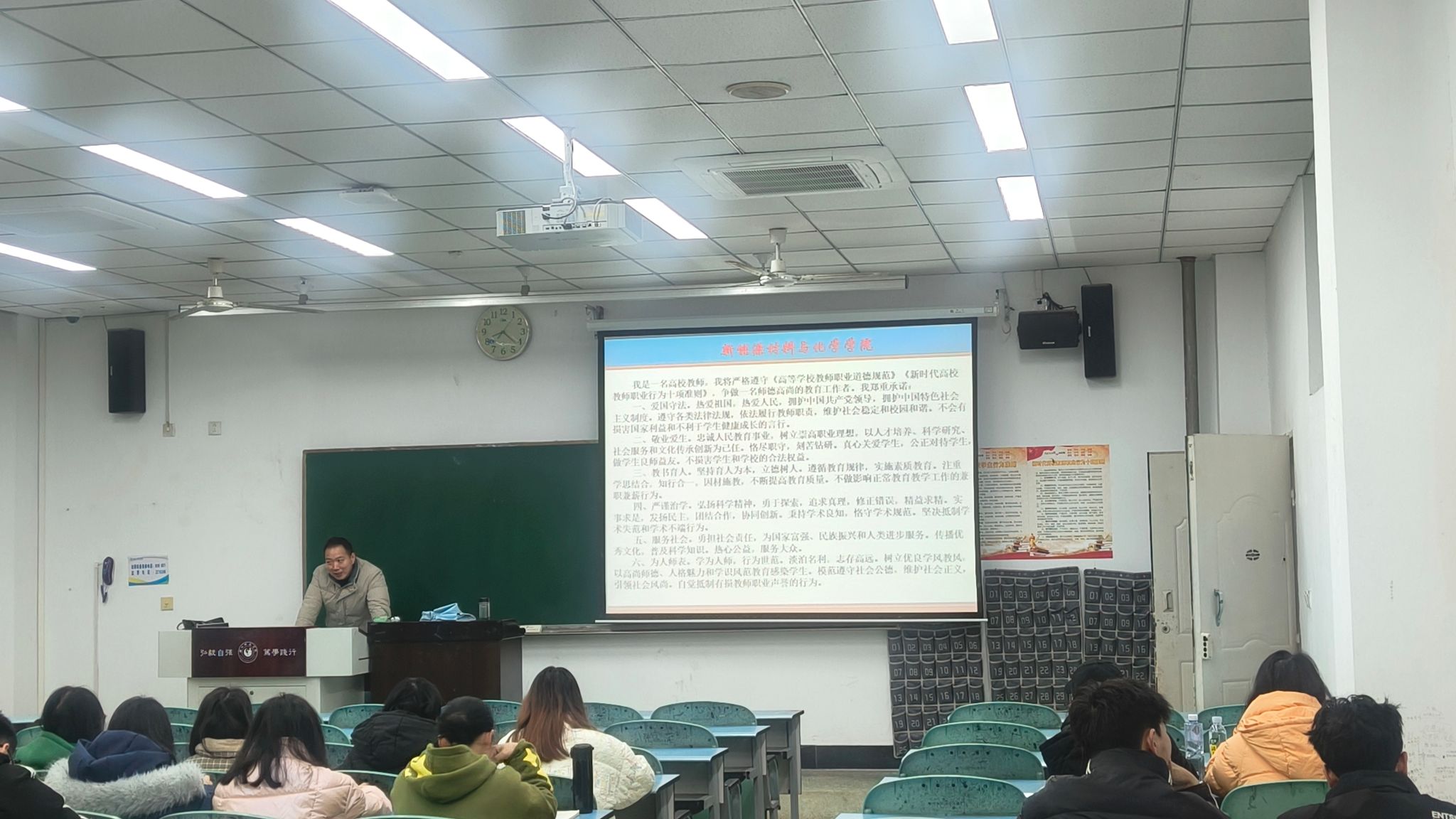课前,学院每一位任课教师在新学期第一堂课前向员工郑重作出师德承诺,承诺始终遵守高校教师职业道德规范,守初心,担使命,忠诚党的教育事业,立德树人,依法执教,为人师表,传承科学文明,传递正能量。不断改进教学方法,增强教学能力,提升课堂质量,确保正常课堂秩序,促进员工成长成才。同时员工也作出学风承诺,承诺端正学习态度,主动拓展提升,用心学习、诚信学习,营造良好的学习氛围。