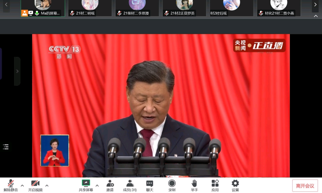 通过收看党的二十大开幕会,同学们感受到了浓厚的民族自豪感,对于自己作为新时代青年的使命也有了更加清晰的认知。“青年强则国强”,在这个全面建设社会主义现代化国家开局起步的关键时期,相信同学们都将不忘初心,继续前进,为实现中华民族伟大复兴贡献出自己的一份力量。