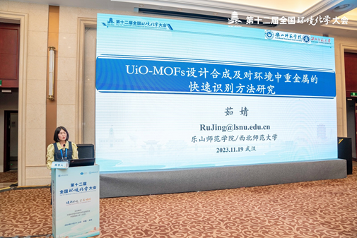 茹婧博士作了题为“UiO-MOFs设计合成及对环境中重金属的快速识别方法研究”的分会场报告。该报告主要对广泛关注的废水中重金属镉、铅、铜、汞、砷等毒性较强的重金属有效治理问题,针对性的设计合成了一系列UiO-MOFs及其复合材料,并建立了复杂环境介质中高效去除重金属及准确灵敏测定镉、铅、铜、汞、砷等重金属的分析方法,为重金属以及抗生素、微塑料等新污染物的高效去除和快速检测提供了新的思路,受到了同行领域专家的肯定。