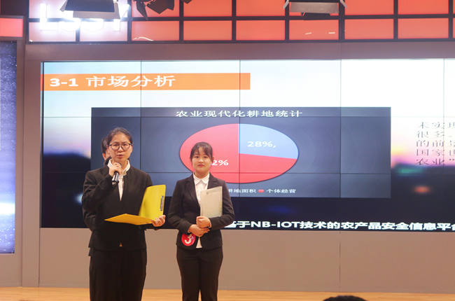 比赛分为创意组和实践组两个组别,内容涉及物联网技术、教育培训、文化创意、社会服务、现代农业等多个领域,在各学院的宣传动员下,全校有90多个项目参赛。经过前期初赛和复赛,共10个团队进入本次决赛,其中创意组8个,实践组2个。现场比赛分为创业计划书评审、项目路演和评委答辩三个环节。在6分钟的路演环节中,各参赛团队通过PPT展示,从产品介绍到市场分析,从商业模式到发展战略,全方位地展示了团队项目特色和核心竞争力。在答辩环节,评委提问犀利、点评到位,并提出了宝贵的意见,让选手们获益匪浅。